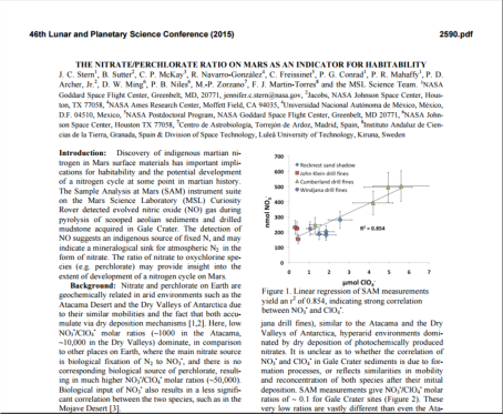 "Sotto l'azione dei raggi ultravioletti, i perclorati rilevati nel suolo e nella brina marziani diventano potenti battericidi, la cui azione è ulteriormente potenziata da altre sostanze presenti nel suolo. La superficie del Pianeta Rosso non appare dunque adatta alla sopravvivenza di microrganismi. La superficie di Marte non è adatta a sostenere la vita di microrganismi".